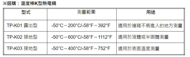 2個測試通道功能可記錄最大值 / 最小值相對值功能顯示 (REL)K/J 2種熱電偶型式選擇測試通道可自動循環量測自動換檔功能